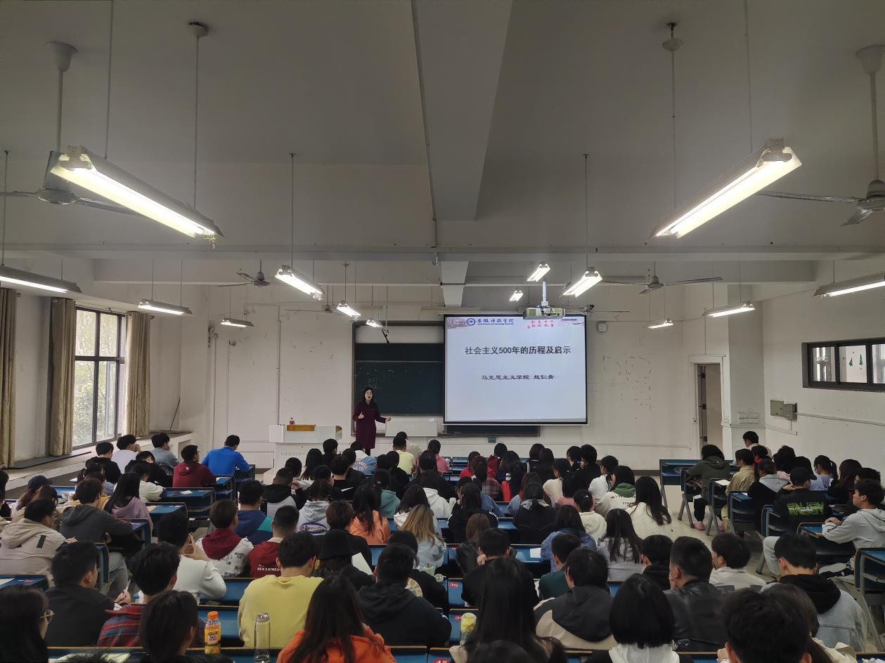 报告会上,赵仁青指出社会主义是长期的,切不可急躁;社会主义是发展的,切不可教条;社会主义是干出来的,切不可空谈,启迪同学们通过学习社会主义发展史,了解国家未来发展大势,做到知史爱党、知史爱国、知史爱社会主义;汲取社会主义历史知识,赓续精神血脉,传承红色基因,提高自我思想素质;学习新思维,在奋发有为中践行初心使命,为人生带来新方向。