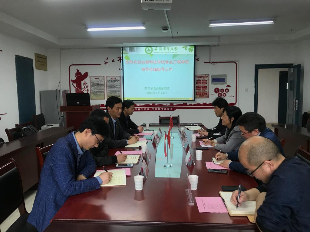 付光玺表示,安徽农业大学茶与食品科技学院党委是“全国党建工作标杆院系”,茶学教工党支部为省先进基层党组织,食品教工第二党支部是安徽省“双带头人”党支部书记工作室,在党建工作中积累了丰厚的工作经验,很多做法具有可复制性,值得我们认真学习借鉴,食品工程学院考察组将对茶与食品学院的党建工作先进做法认真学习消化,持续坚持围绕中心抓党建的基本思路,不断深化学院特色的党建工作“五个结合”,推动学院党建和发展工作再上水平、再上台阶。