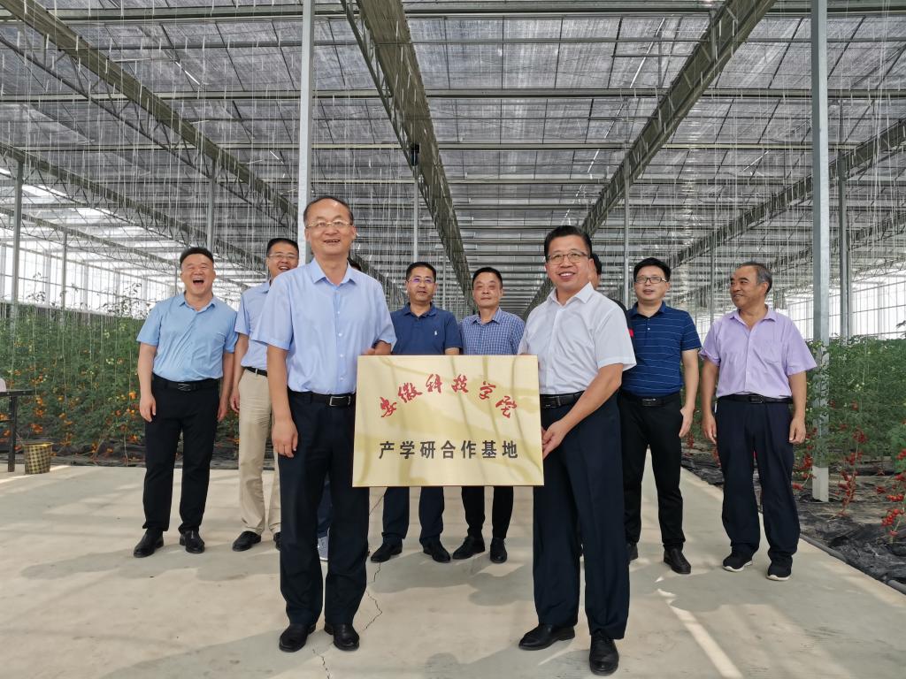 8月18日上午,何世潮一行在阜阳市颍东区二级巡视员王雷和颍东区委常委、副区长程传雷等的陪同先后考察了安徽瓦大现代农业科技有限公司、阜阳市立华畜禽有限公司和颍东区插花镇杨桥居委会,并进行了座谈。在座谈交流会上,瓦大集团总经理刘志才和立华公司总经理牛洪波分别介绍了各自的公司现状、企业文化、发展规划、人才需求和项目合作需求等方面情况,省财政厅下派干部、颍东区插花镇杨桥居党总支第一书记徐进超介绍了颍东区插花镇杨桥居委会基本情况、开展的工作、存在的问题和未来的展望。何世潮和崔广荣介绍了学校及学院师资队伍、人才培养和社会服务等情况,他们表示,学校始终坚持走政产学研融合之路,努力将科研成果转化到实际生产,为企业科研成果运用提供强有力的支撑。瓦大集团与三亿网页版合作的“产学研合作基地”和“校外实习实训基地”揭牌仪式在瓦大番茄谷隆重举行。崔广荣与颍东区插花镇党委副书记、镇长张勇座谈会后签订了政产学研合作协议。
