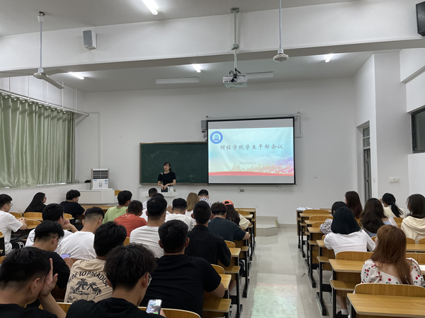 为加强学生干部管理,进一步优化工作作风,全面推动新学期学生工作,9月1日下午,财经学院在龙湖校区致知楼B106召开学生干部会议。院党委书记杜小明出席会议并讲话。专职辅导员季昌文及各班班长、团支书参加会议。会议由院团委书记薛枫主持。