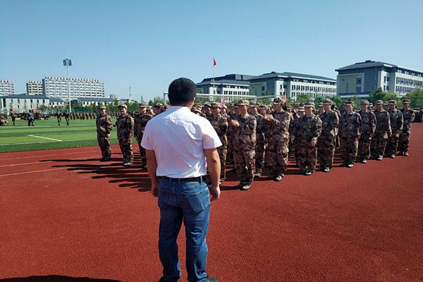军训场上,同学们昂首挺胸、英姿飒爽,彰显着学院学子敢吃苦、愿拼搏的精神风貌。杜小明代表学院党政表达了对新生的亲切关怀,高度赞扬学院2021级新生吃苦耐劳、不抛弃、不放弃的精神。他表示,军训是大学生活开始的第一堂课,也是大学生活的重要环节。他寄予三点希望。一是希望同学们在军训中,强健体魄,磨练意志;二是希望同学们发扬艰苦奋斗精神,高标准严要求地完成军训任务;三是希望同学们充分利用一切军训时间,加强学习,尽快融入大学生活,为今后课程学习奠定良好的基础。同时,他与承训教官进行了深入交流,充分肯定了军训成果,并对教官的辛勤付出表示衷心的感谢和诚挚的敬意。郝世绵勉励2021级新生要严于律己、刻苦训练,争取圆满完成军训任务。同学们纷纷表示将以更加饱满的精神面貌和顽强的斗志投入到接下来的训练中,充分发扬学校的优良传统,保证完成军训任务,交上一份令人满意的答卷。