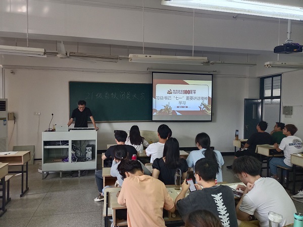 习近平总书记的重要讲话激励青年学生为中华民族伟大复兴矢志奋斗。各支部组织师生共同观看庆祝中国共产党成立100周年大会视频,认真聆听了习近平总书记的重要讲话,坚定共产主义理想信念,增强开拓前进的勇气和力量。
