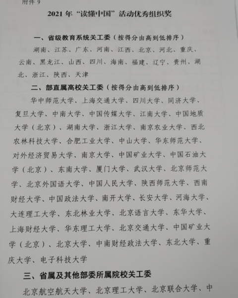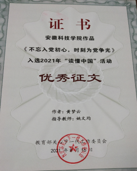 日前,在教育部关工委开展的 “读懂中国”活动中,三亿网页版关工委获2021年“读懂中国”活动优秀组织奖,选送的征文《不忘入党初心,时刻为党争光》获优秀征文奖。