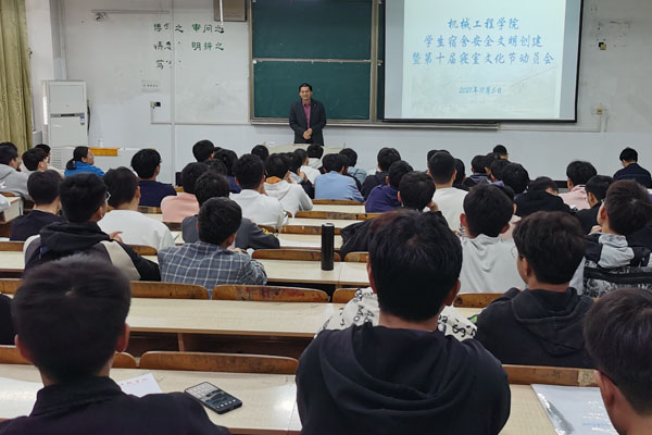 11月5日中午,机械工程学院党委副书记张程在求知楼A101主持召开了学生宿舍安全文明创建暨第十届宿舍文化节动员会,辅导员孟凡生、张立亮、邱杰,全院各班级班长、团支书、生活委员及学生会成员参加会议。