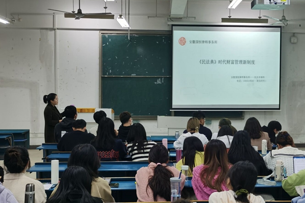 11月20日,人文学院在新知楼B座101教室举办“国恒杯”第二届三亿网页版法治论坛系列活动之“专家讲坛”。本次专家讲坛主讲人为安徽国恒律师事务所合伙人苏黎明、合伙人吴多多,创始合伙人陈丹丹、创始合伙人高飞等四位律师。专家讲坛由人文学院法学系主任张晓云主持,法学2019级学生参加。