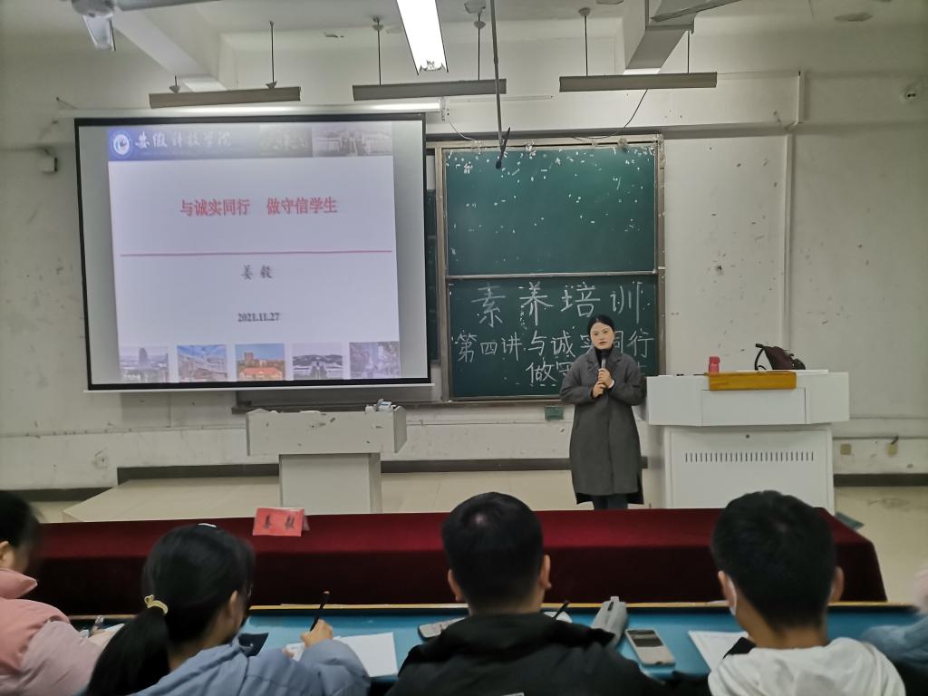 11月27日晚,生命与健康科学学院在新知楼B304教室开展2021级骨干培训之素养培训的第四讲《与诚信同行,做守信学生》。学院团委副书记姜毅应邀担任主讲嘉宾,2021级各班班委、学生会21级全体实习生共计160余人参加此次培训。