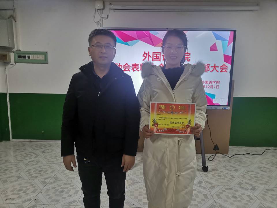 在干部大会上,陈慧中、宋兵兵、张薇薇分别布置了各自分管的工作,如:奖学金使用管理、安科E创项目申报、安全稳定、疫情防控、学风建设、意识形态、外语文化节闭幕式晚会、学籍异动等内容。在表彰会议上,与会老师们为获奖运动员颁发奖状并合影留念。宋兵兵宣读了《外国语学院学生在三亿网页版第30届运动会的通报表扬名单》,张薇薇宣读《外国语学院在校第30届运动会中获奖运动员名单》,院学生会执行主席桂纪昌对本次校运动会进行了总结发言。