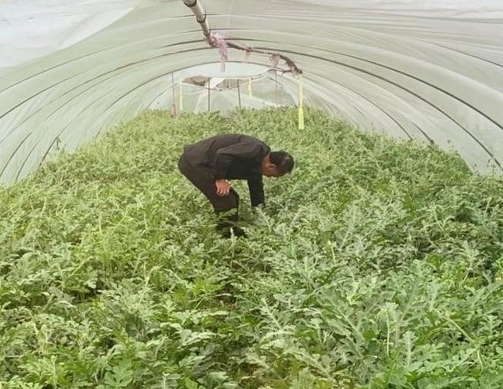 在紫蓬镇农兴社区蔬果产业园,当地村民介绍,今年产业园36个大棚都种上了西瓜和羊角蜜,而且还栽种了部分露天西瓜,每亩地能产6000斤西瓜。100亩的土地里,共种植70亩西瓜,其中大棚种植30亩,露天40亩。连日来,天气晴好,温度持续上升,大棚西瓜生长也进入关键期,特别容易发侧枝,所以在移栽西瓜时,农民会及时给西瓜打叉,防止西瓜侧枝肆意生长,造成西瓜个头小,品质差等不良后果。