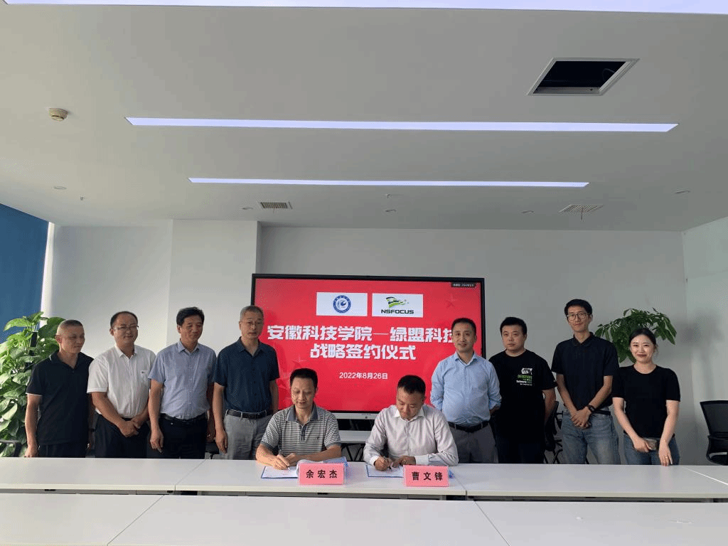 8月26日下午,王振其一行来到绿盟科技股份有限公司合肥办事处进行考察,洽谈校企合作,受到公司科教文卫事业部总经理李永松、首席代表曹文锋和各部门负责人的热情接待。座谈会上,余宏杰详细介绍了学校发展概况、学院专业设置、人才培养模式和2023届毕业生情况,就企业最为关心的人才招聘问题进行了深入的交流。李永松高度评价了我校毕业生的优良品质和为公司发展做出的重要贡献,希望学校能够推荐更多的优秀毕业生来公司实习和就业,并与学院签订了战略合作协议。