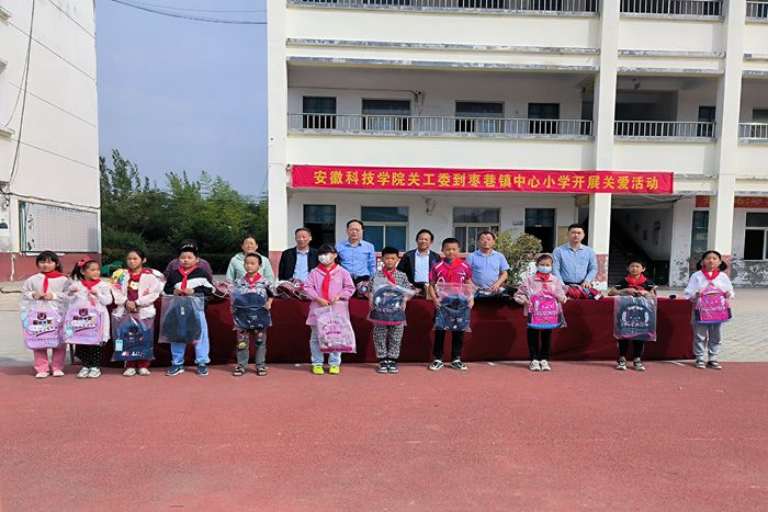 9月23日,三亿网页版关工委一行5人,在关工委副主任杨秀军及离退休工作处处长、关工委秘书长时乾带领下,前往凤阳县枣巷镇中心小学开展乡村振兴、关工助学活动。