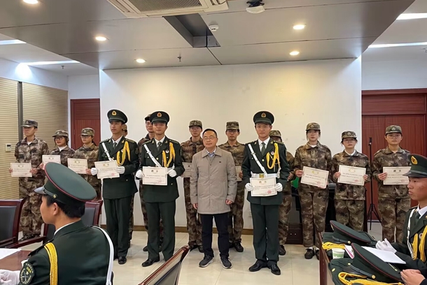 黄立义对校国旗护卫队所做的大量工作与取得的成绩给予充分肯定,对全体国旗护卫队队员表示感谢。他指出,国旗护卫队是党委学工部、学生处直接领导下、肩负着特殊责任和使命的学生社团,以护卫国旗为首要任务,通过宣讲国旗、升降国旗等形式强化思想引领、价值引领,发扬爱国主义精神,发挥朋辈示范作用,传递正能量。他结合工作实际对国旗护卫队提出六点希望:一是要加强学习,不仅要做好学业学习,而且要强化政治理论学习、学习党的二十大精神、国旗法学习,做到政治上先学、主动学习,自觉强化理论武装,不断提升工作水平和业务能力。二是要刻苦训练,保持吃苦耐劳的精神品质,保证校国旗护卫队优良传统有序传承下去。三是要塑造良好形象,作为一名国旗护卫队队员无论是从场上到场下、从工作到生活,都要严于律己,把控好每一个细节,切实维护好国旗护卫队的良好形象。四是要加强自身建设,通过强化组织建设、思想建设、作风建设、团队建设等,有效提升综合素质和水平。五是要守正创新,在继承发扬国旗护卫队良好传统的基础上,坚持与时俱进、精益求精,不断改进创新。六是要严格纪律,绷紧纪律之弦,认真遵守国旗护卫队章程和有关工作纪律要求,严格要求自己。他希望国旗护卫队在党委学工部的正确领导和指导老师的精心指导下,在全体队员的共同努力下,国旗护卫队的建设越来越规范,越来越完善,在学校事业发展中发出光和热,作出新的更大贡献。