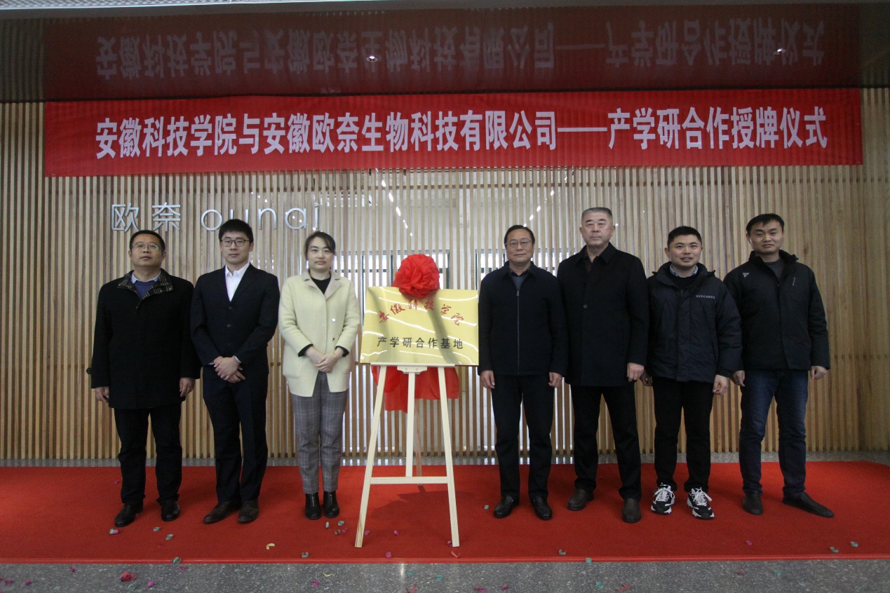 2022年12月7日,我校食品工程学院与安徽欧奈生物科技有限公司产学研基地揭牌仪式在滁州市中新苏滁产业园安徽欧奈生物科技有限公司举行,食品工程学院院长杜传来与欧奈生物科技董事长刘明共同揭牌。食品工程学院食品工程系系主任陈春旭,苏滁产业园管委会党政办主任徐映珺、经济运行局王震,欧奈生物科技有限公司总经理刘远志等公司领导和主要部门负责人参加,揭牌仪式由副总经理郭有村主持。