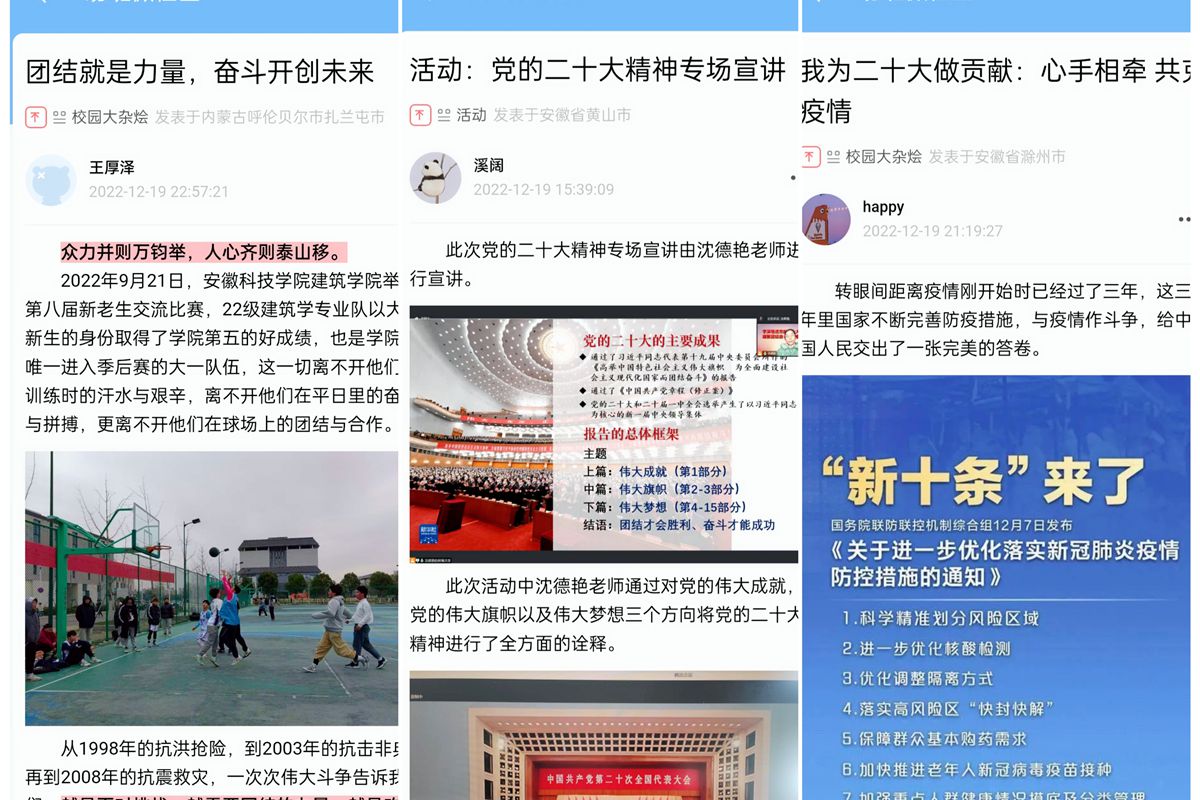 宣讲后,班级依托易班网络平台,陆续开展“我为党的二十大做贡献”线上接力活动,进一步推动党的二十大精神入脑入心,走深走实。