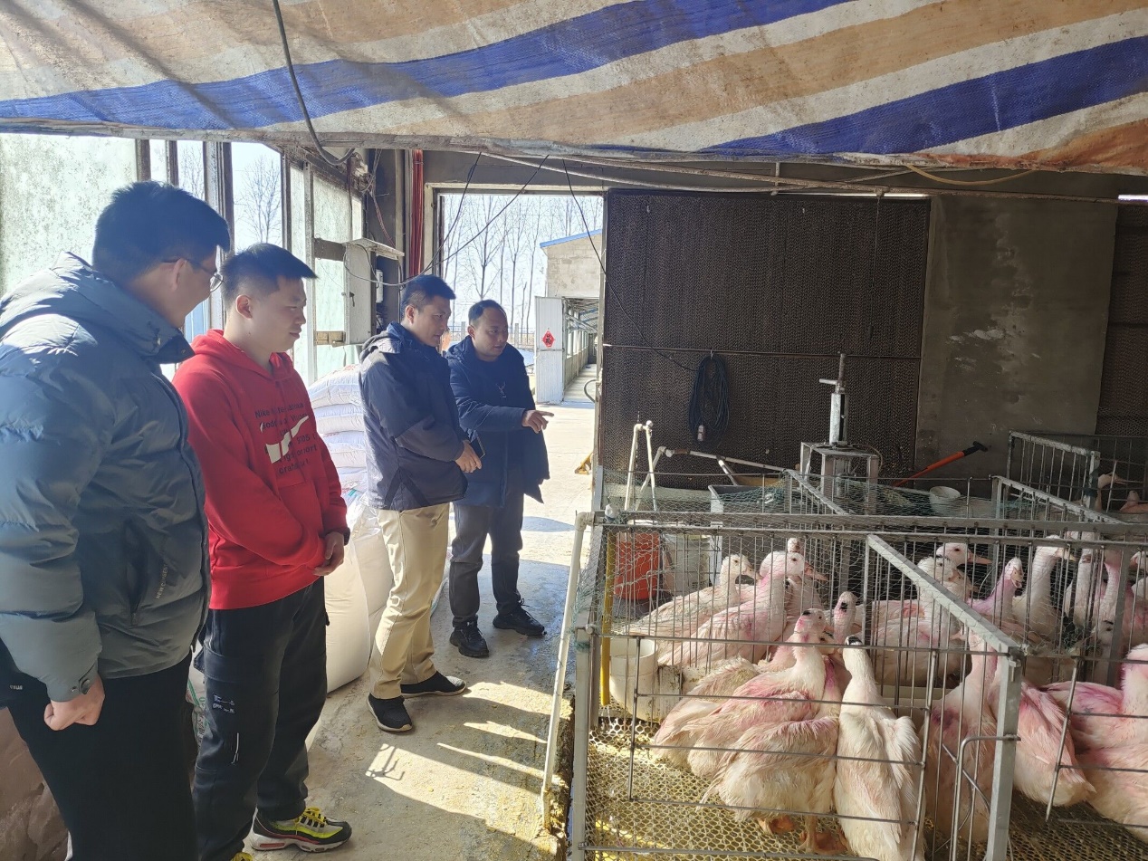 2月25日,甄宗圆带领团队在霍邱县畜牧发展中心及孟集镇畜牧站的协助下,分别走访霍邱远星禽业养殖有限公司、霍邱县任俊禽业养殖有限公司、霍邱天竹畜禽养殖有限公司、霍邱县佳兴畜禽养殖有限公司等几家主要的鹅肝生产企业,与企业负责人深入探讨企业生产中遇到的技术难题,并就开展校企产学研合作、学生实习与就业等事宜进行了交流和讨论。