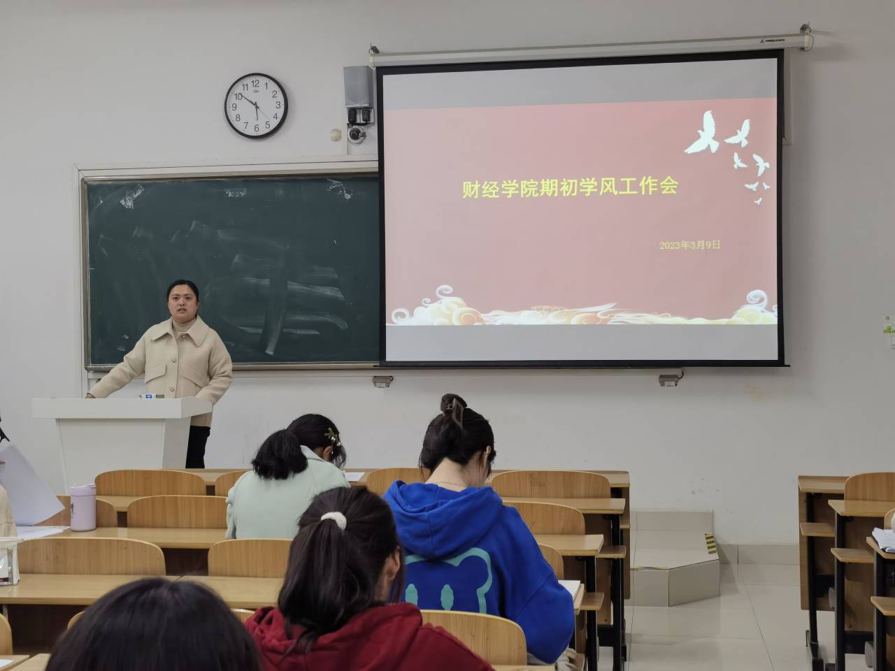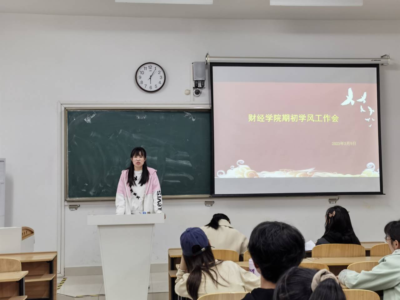 为继续落实财经学院各项学风管理制度,创建优良学风,3月13日中午,财经学院在致知楼C205教室召开“我为学风献一策”座谈会。团委书记、纪委副书记薛枫及院学生会学习发展部全体成员、学院各班级学习委员参加会议。会议由辅导员宣晶晶主持。