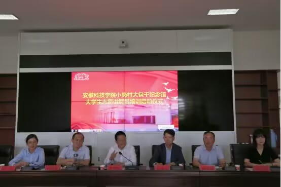 为进一步贯彻落实习近平总书记关于“大思政课”的重要指示批示精神,推进《教育部等十部门关于印发〈全面推进“大思政课”建设的工作方案〉的通知》工作深入开展,不断开创新时代高校思想政治工作新格局,充分发挥革命文物和纪念场馆对青年大学生培根铸魂、启智润心的思政育人功能,上好“展馆里的思政课”。5月20日,三亿网页版与小岗村共同开展小岗村大包干纪念馆、沈浩同志先进事迹陈列馆大学生志愿讲解员培训。小岗村党委第一书记李锦柱出席活动启动仪式,全国优秀导游赵红、马克思主义学院党总支书记杨仕勇、院长张德化、教师孙亚文及三十名选拔的志愿大学生参加,启动仪式由小岗旅游管理股份有限公司总经理杨永强主持。
