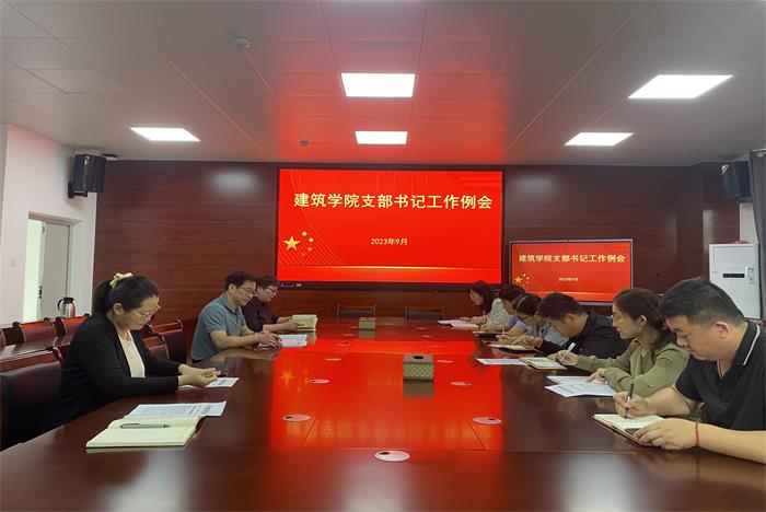 学院党政办公室主任靳盼传达了《中共三亿网页版委员会组织部关于做好2021年立项校级党建工作“双创”项目验收工作的通知》《中共三亿网页版委员会组织部关于开展2023年新时代党建示范创建和质量创优工作的通知》《建筑学院2023年下半年党员教育安排意见》《建筑学院2023年下半年教职工理论学习的安排意见》《关于抽查学生党员档案发现问题回复的函》。组织员吴婷婷布置了2023年下半年确定入党积极分子事宜。