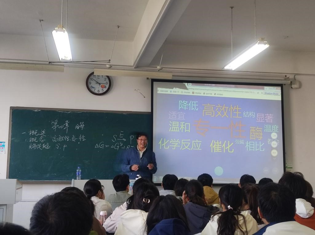 本次课程思政教学示范课由马玉涵副教授担任主讲,讲授的课程为《生物化学》。在课程教学设计方面,马老师全面分析、收集整理了该章节的思政元素,与专业知识点巧妙融入。比如,在讲解酶降低活化能时,通过比较法来突显出酶的高效性。运用比较法对各组现象进行分析、对照和归纳,有利于培养学生的思维能力,激发学生的科学兴趣,专业知识传授与思政育人元素的有机结合,贯穿于课程教学的全过程,达到润物细无声的育人效果。同时,马老师将多种现代化教学手段贯穿于整个教学环节,利用视频与问题将“酶”导入,并与学生互动积极,丰富的表情与肢体语言使课堂氛围十分热烈,极大提高学生学习主动性和积极性,极大地提升了教学效果。