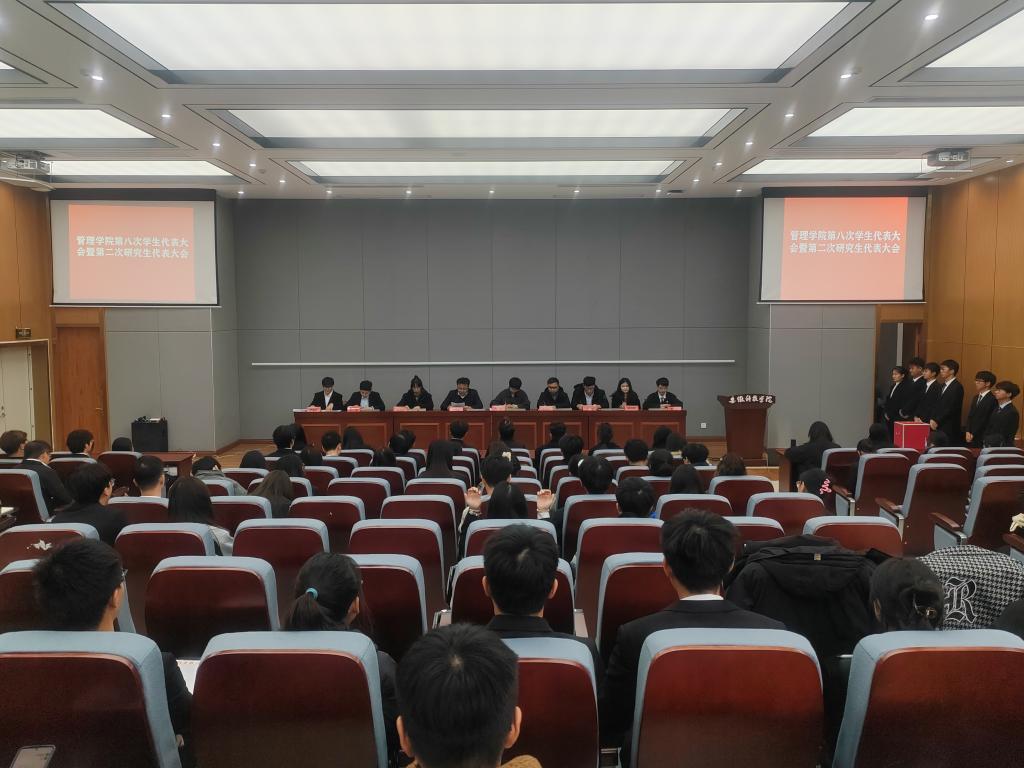 11月30日下午,管理学院第八次学生代表大会暨第二次研究生代表大会在龙湖校区敏行楼报告厅召开。学院党委副书记陶漫出席大会并致辞。学院全体辅导员、大会主席团成员出席大会开幕式并在主席台就座。学院团委副书记江旭聪主持开幕式。
