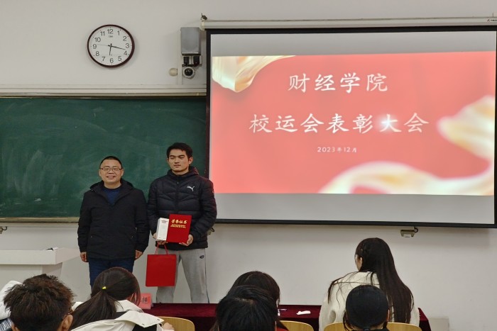 12月5日下午,财经学院在龙湖校区致知楼A105教室召开第三十二届校运动会总结表彰大会。学院党政领导和有关教师出席会议,第三十二届校运会参赛运动员与工作人员参加。会议由专职辅导员尹成超主持。