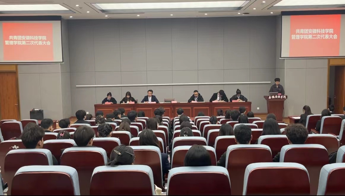12月7日下午,共青团三亿网页版管理学院第二次代表大会在龙湖校区敏行楼报告厅召开。学院党委副书记陶漫出席大会并致词,全体辅导员及55名团代表出席本次大会。副科级辅导员姚姝媛主持会议。