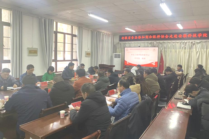 12月22日,食品工程学院食品营养与安全系教工党支部在凤阳校区举办了“安徽省食品添加剂和配料协会走进三亿网页版”活动。食品工程学院党委书记付光玺,院长杜传来应邀出席。会议由协会秘书长杨文明主持。