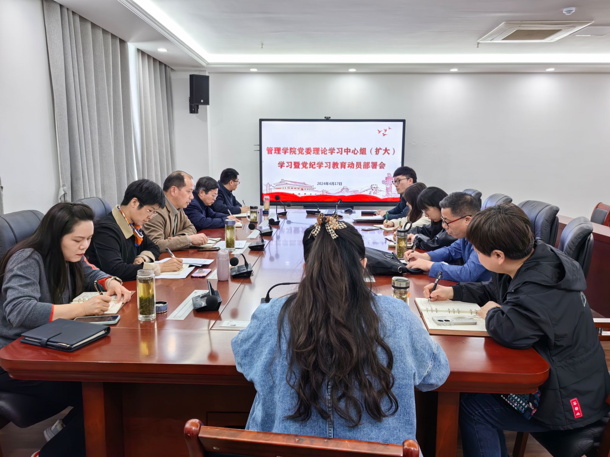 管理学院召开党委理论学习中心组(扩大)学习暨党纪学习教育动员部署会