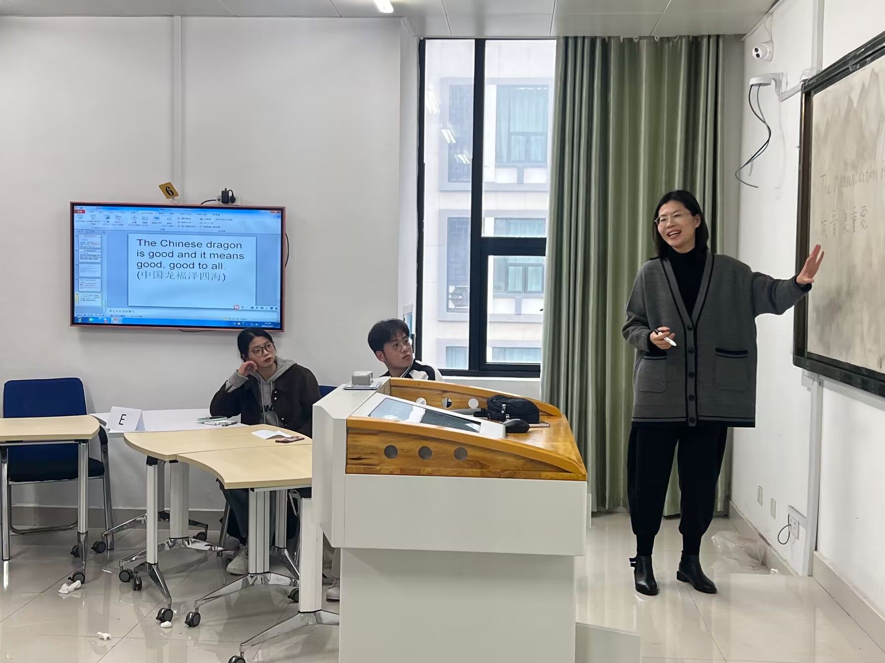 此次英语角文化节分“技能提升、情景融入、奋发励志”三个主题进行,通过一系列富有创意和趣味性的环节,不断将活动引向深入。“技能提升”环节,黄金金就写作词汇和听力口语两方面,对同学们进行有效指导,帮助他们提高英语表达能力。活动还邀请到了在四六级考试、全国大学生英语竞赛中取得过优异成绩的张益中同学,分享其备考备赛中的学习经验,就英语学习过程中遇到的问题和同学们展开交流;“情景融入”环节,吴媚与同学们用英文进行主题情景对话,交流中指导并纠正同学们的口语发音;“奋发励志”环节,吴媚带领大家观影了部分经典英文电影片段,重点分享了《国王的演讲》,以影片中口吃国王的励志故事,激励同学们在英语的学习中,奋发进取,不畏困难,持之以恒,力争取得好成绩。
