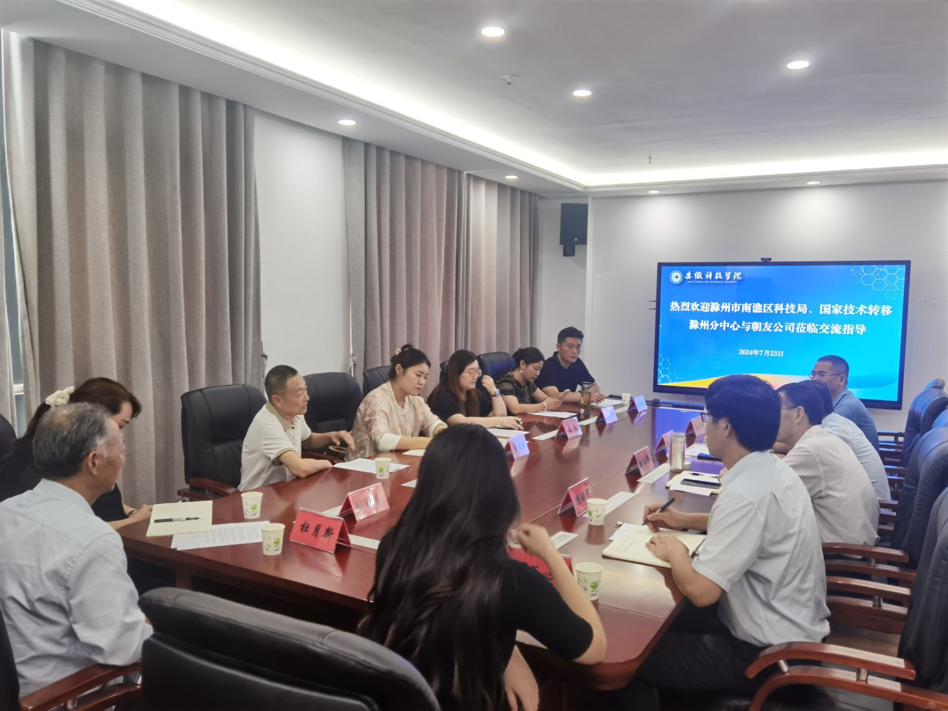7月23日上午,滁州市南谯区科技局、国家技术转移东部中心滁州分中心、滁州市朝友精密制造有限公司一行来电气与电子工程学院洽谈产学研合作,校科研处处长陈丰,电气与电子工程学院党委书记骆海邦,党委副书记、院长夏显明,副院长樊晓宇及学院教师代表出席交流会。会议由骆海邦主持。