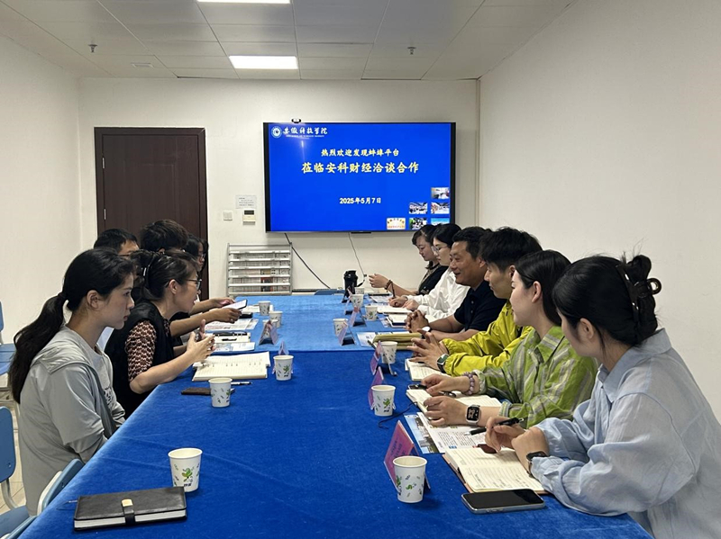 为推进校企深度合作,实现资源共享、协同发展,5月7日下午,懿文汇数字科技(安徽)有限公司(发现蚌埠平台)总经理杨连高一行到财经学院就深化合作项目展开交流座谈。财经学院党委书记杜小明,院长郝世绵,安科绿农电商直播团队成员参加座谈。