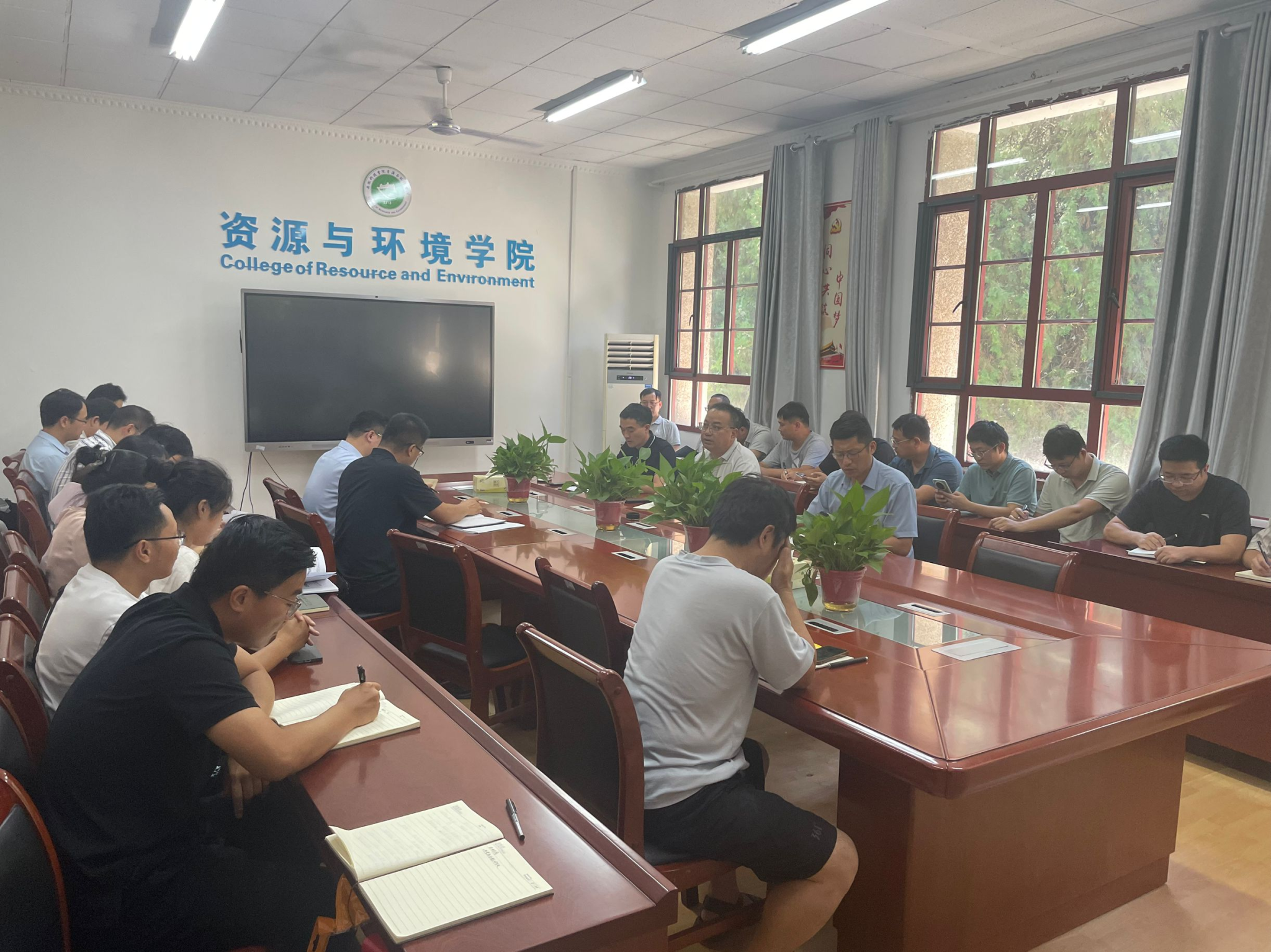 为深入贯彻落实学校第四次党代会精神,统筹推进新学期各项重点工作,8月29日上午,资源与环境学院在学院会议室召开2025年秋季学期开学第一次全体教职工大会。会议由学院党委书记沈树周主持,学院党政领导班子成员及全体教职工参加会议。