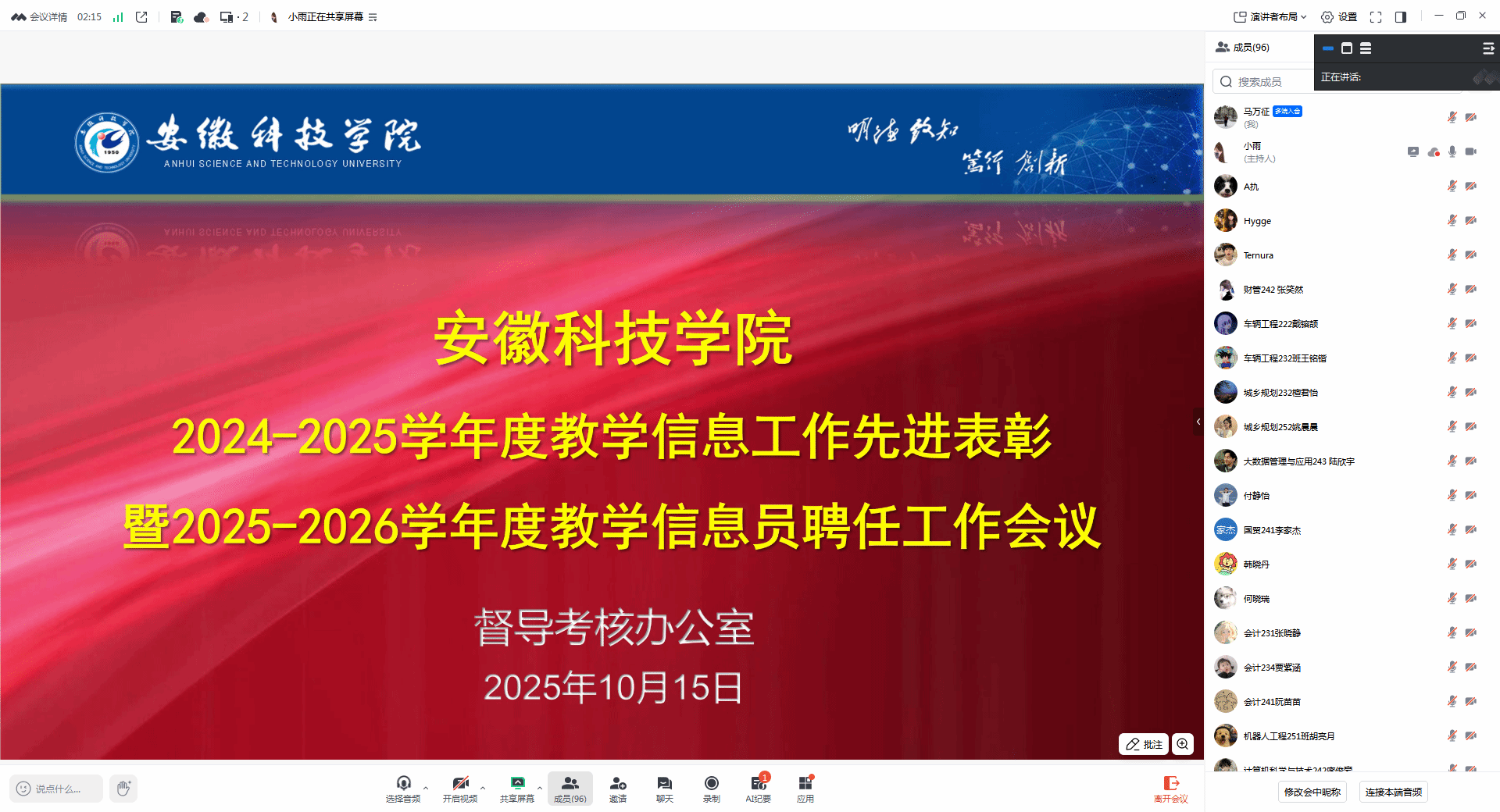 会上,督导考核办公室谢静静宣读了《关于表彰2024-2025学年度教学信息工作先进并聘任2025-2026学年度学生教学信息员的决定》,并带领全体参会人员共同学习了《三亿网页版学生教学信息员管理条例(修订)》。随后,她就教学信息员的工作内容开展了业务指导与培训。优秀教学信息员代表张瑞洁在会上作了经验分享。