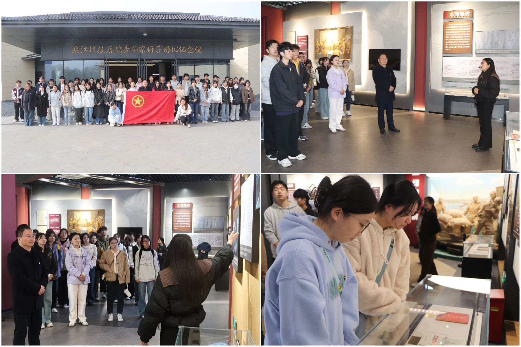 在渡江战役总前委群像前,参加此次活动的学生满怀崇敬之情,深切缅怀革命先辈的丰功伟绩。在讲解员的带领下,依次参观了纪念馆中“谋定方略”“奋楫扬帆待号令”“运筹帷幄定江南”“珠城支前铸丰碑”“百万雄师过大江”五个展厅和总前委领导人旧居,通过参观历史照片、革命文物及场景复原等陈列展示,学生们了解了渡江作战纲领性文件《京沪杭战役实施纲要》的制定背景,沉浸式学习了渡江战役的恢宏历史,全面地了解了渡江战役总前委革命先辈的历史功绩,更加深刻地感悟渡江战役蕴含的伟大革命精神。