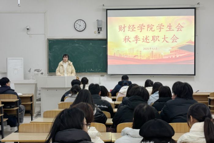 12月24日下午,财经学院在龙湖校区致知楼A108召开学期末学生会述职评议大会。学院团委书记薛枫、学生会指导老师尹成超、校学生会主席团成员出席会议,学生会全体成员参加会议。
