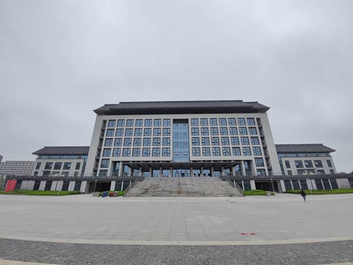 建筑色调上以灰色金属顶、深灰色及浅灰色花岗岩墙面、搭配金属铝合金型材,造型简洁又富含传统元素,形成典雅精致的校园中心建筑的形象。