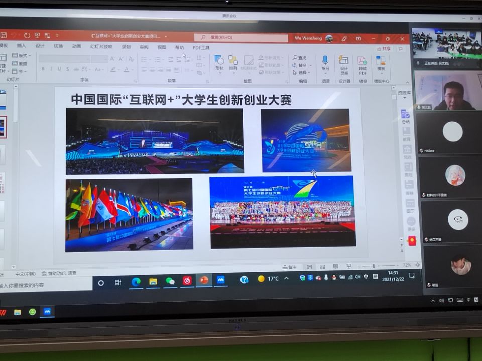 为推进我校大学生创新创业教育工作,12月22日下午,教务处 创新创业学院邀请安徽省大学生创新创业教育办公室主任助理吴文胜老师在线上为我校学生作《“互联网+”大学生创新创业大赛项目备战经验分享》专题报告。“互联网+”创新创业大赛培育项目团队负责人分别在凤阳校区求知楼B303(智慧教室)、龙湖校区致知楼B304(智慧教室)参加视频报告会,报告会由创新创业学院副院长高青海主持。