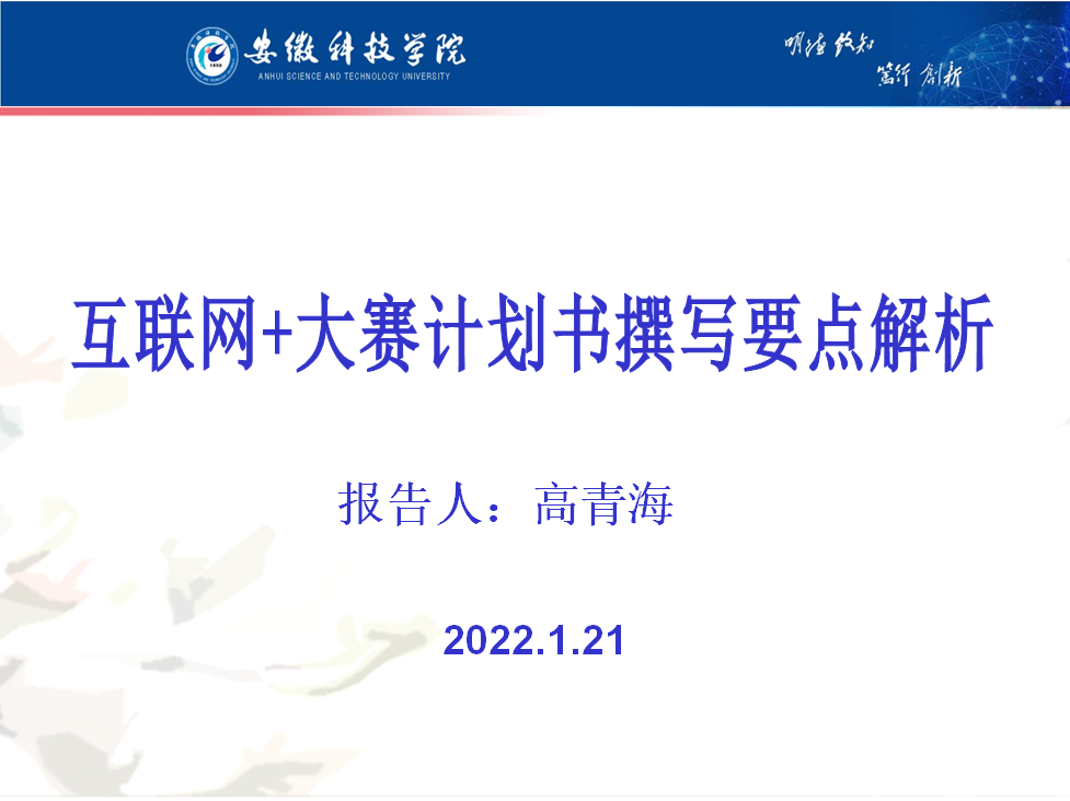 会上,高青海以“‘互联网+’大赛计划书撰写要点解析”为主题,结合往届获奖项目的实例,从大赛选题、大赛逻辑关系、大赛计划书撰写、大赛计划书要点等模块进行了分析和解读。报告结束后,高青海与项目团队成员进行了线上互动交流,就同学们关心的大赛项目选题和大赛计划书撰写过程中急难愁盼的问题进行了详细的沟通与交流。