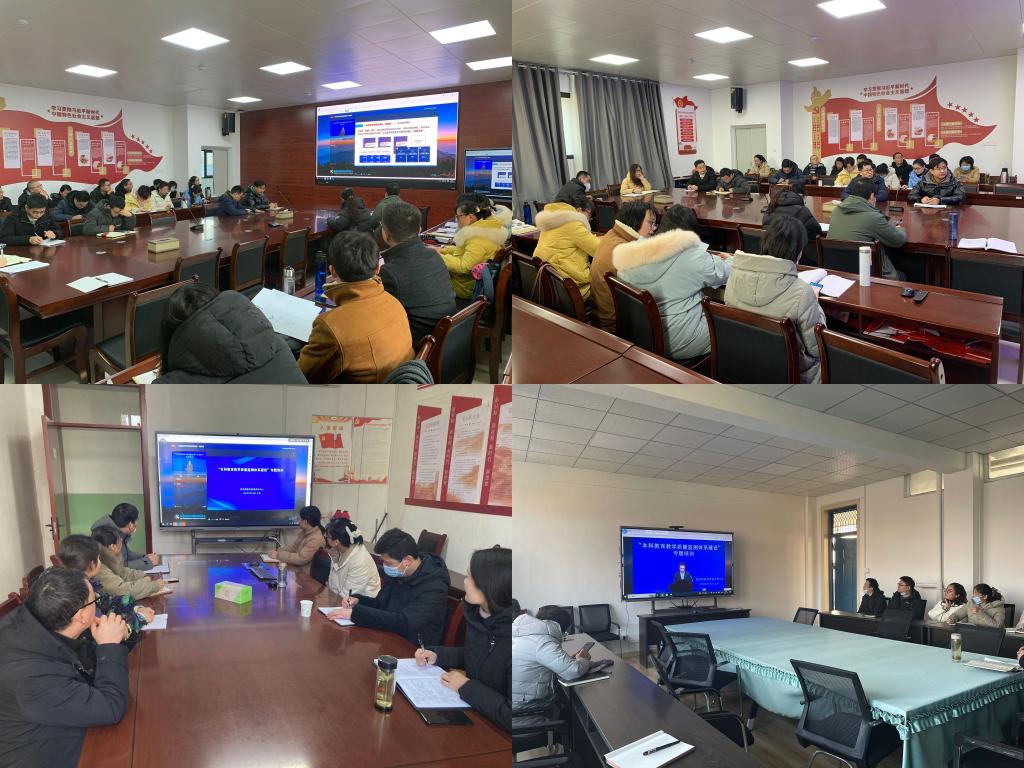 为深入学习贯彻党的二十大精神,帮助高校了解全国本科教育教学质量、同类院校发展,以及本科教育教学质量监测体系建设情况,推动高等教育高质量发展,2月15日上午,教育部教育质量评估中心以视频会议形式开展“本科教育教学质量监测体系建设”专题培训。全国836所高校,52家省级评估机构、教育科研机构、高教社团组织约36000人参加线上培训。我校各二级学院负责人、系(教研室)主任、专业负责人,教务处、督导考核办公室全体人员以及相关职能部门工作人员参加培训。