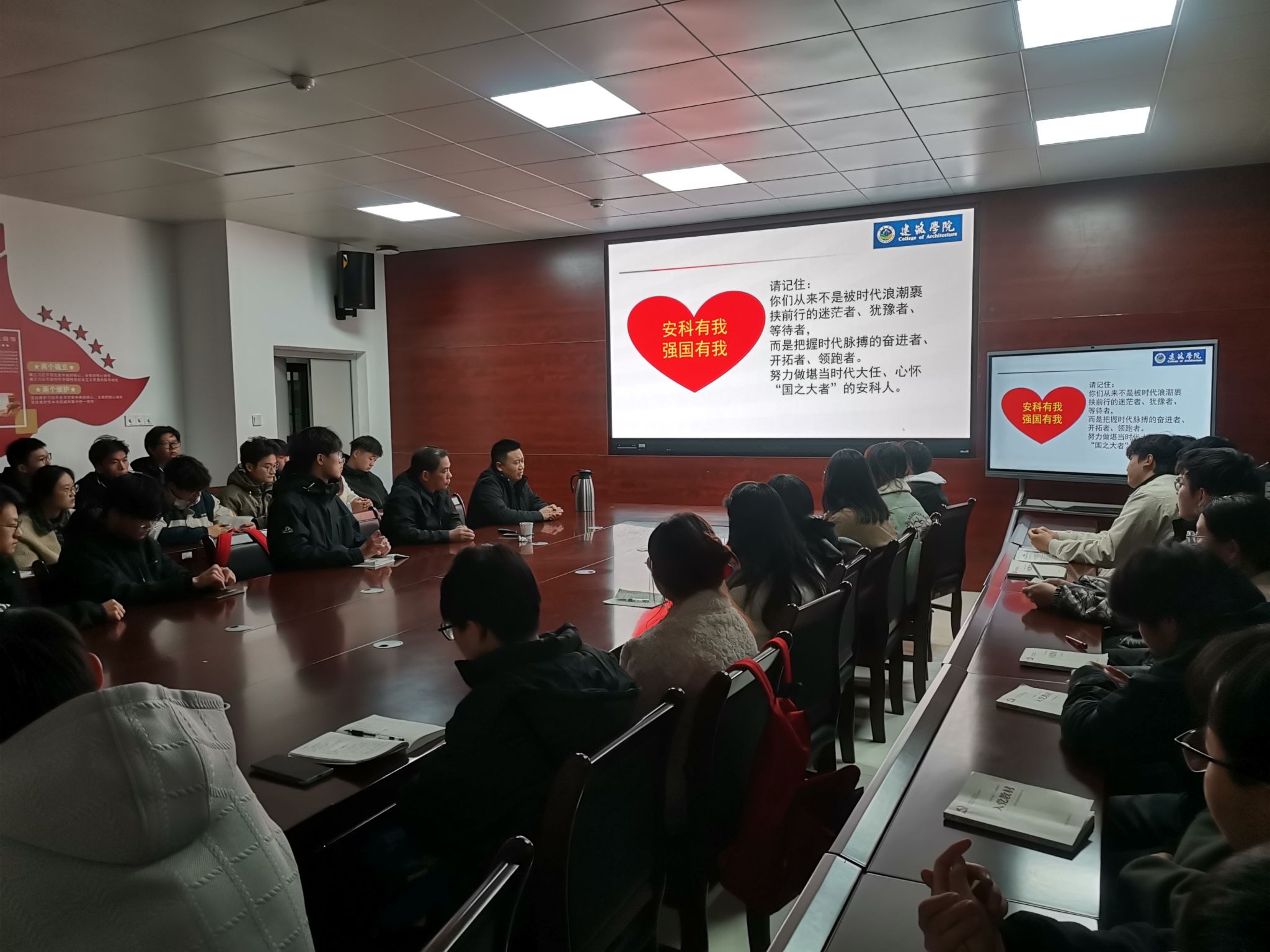 蔡安宁教授从介绍“新安旅行团”开始导入,引导同学们深刻认识中国共产党之大、理解中国共产党之强,自觉接受党组织的培养、教育和帮助,坚定听党话、跟党走的决心,做到心中有信仰,心中有祖国,始终坚守对党和国家的信仰。授课中,蔡教授列举了众多心中有信仰的科学家、仁人志士们,为了实现心中信仰,抛头颅、洒热血、隐姓埋名、身先士卒;同时结合建筑学院的专业情况,详细介绍了梁思成、林徽因、陈占祥、杨廷宝、吴良镛等建筑学界的专家们,他们心系祖国,拒绝国外大好前程,毅然决然留在祖国,为了祖国的建设和发展做出重大贡献,并强调新时代的大学生们也要胸怀天下、心系家国,将自己的人生目标与社会责任紧密联系起来,知重负重,主动担负起实现中华民族伟大复兴之重。最后,蔡教授希望同学们记住“你们是把握时代脉搏的奋进者、开拓者、领跑者,从来不是被时代浪潮裹挟前行的迷茫者、犹豫者、等待者”,鼓励同学们努力做堪当时代大任、心怀“国之大者”的安科人。