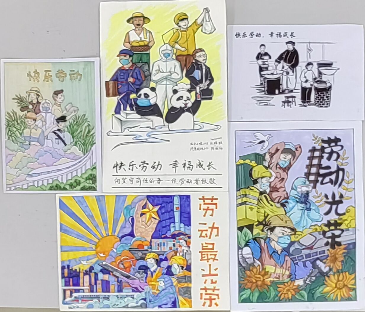 活动发布后,学院各班级学生积极参加,共收到绘画作品50余幅。学生们或用简约的线条勾画劳动的场景,或用多变的色彩绘制劳动的人民。有的形象生动地展现了劳动人民的艰辛,有的向平凡的劳动人员表达由衷的敬意,有的传达出劳动的光荣和伟大。作品或清新脱俗,或意境深远。学院邀请专业老师对作品进行了评选,最终评选出一等奖5名,二等奖5名,三等奖5名,优秀奖5名。