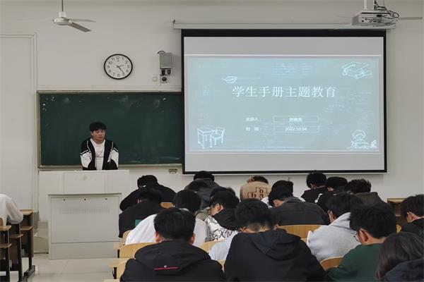 为加强新生校规校纪教育,提高新生自律意识和安全防范能力,10月4日至7日建筑学院分专业组织2022级新生集中学习《三亿网页版学生手册》,新生辅导员助理赵俊龙担任主讲。
