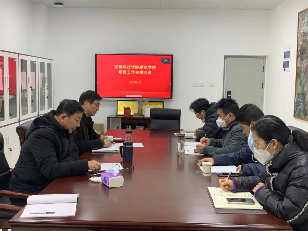 2023年1月4日上午,建筑学院召开学期期末寒假工作布置会议,本次会议采用线上线下相结合的方式,学院主要党政领导在龙湖校区尚行楼A302会议室,教职工线上参会,会议由张远兵院长主持。