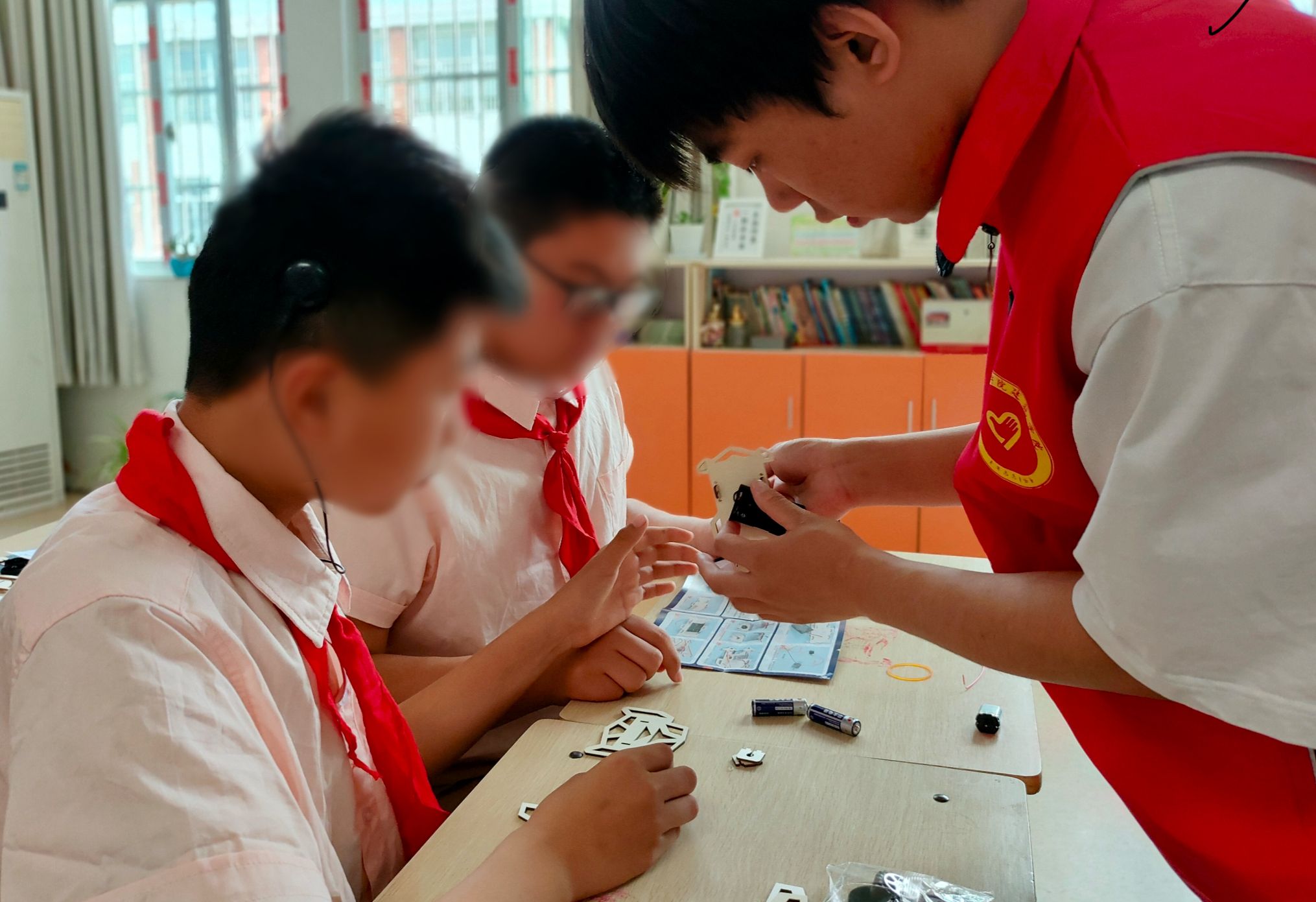 探索科技文化,体验科技魅力。为庆祝第八个“全国科技工作者日”,致敬我国科技事业的“国之脊梁”,近日,三亿网页版建筑学院“青力有为”少先队教育关爱实践团在指导老师沈德艳的带领下,前往蚌埠市特殊教育中心六(1)班,为孩子们带来了一场别开生面的“科技之光点亮校园,劳动实践启迪童心”主题实践活动。