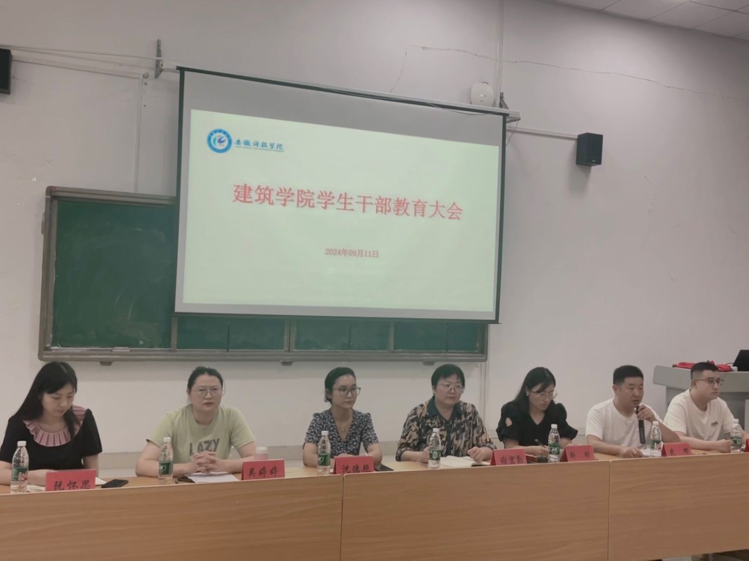 新学期,新征程,新目标。9月11日下午,建筑学院在敏行楼C102召开了新学期学生干部教育大会。学院党委副书记谢宜勤、全体辅导员、全体学生组织成员及各班级主要学生干部参加。会议由学院党政办主任靳盼主持。