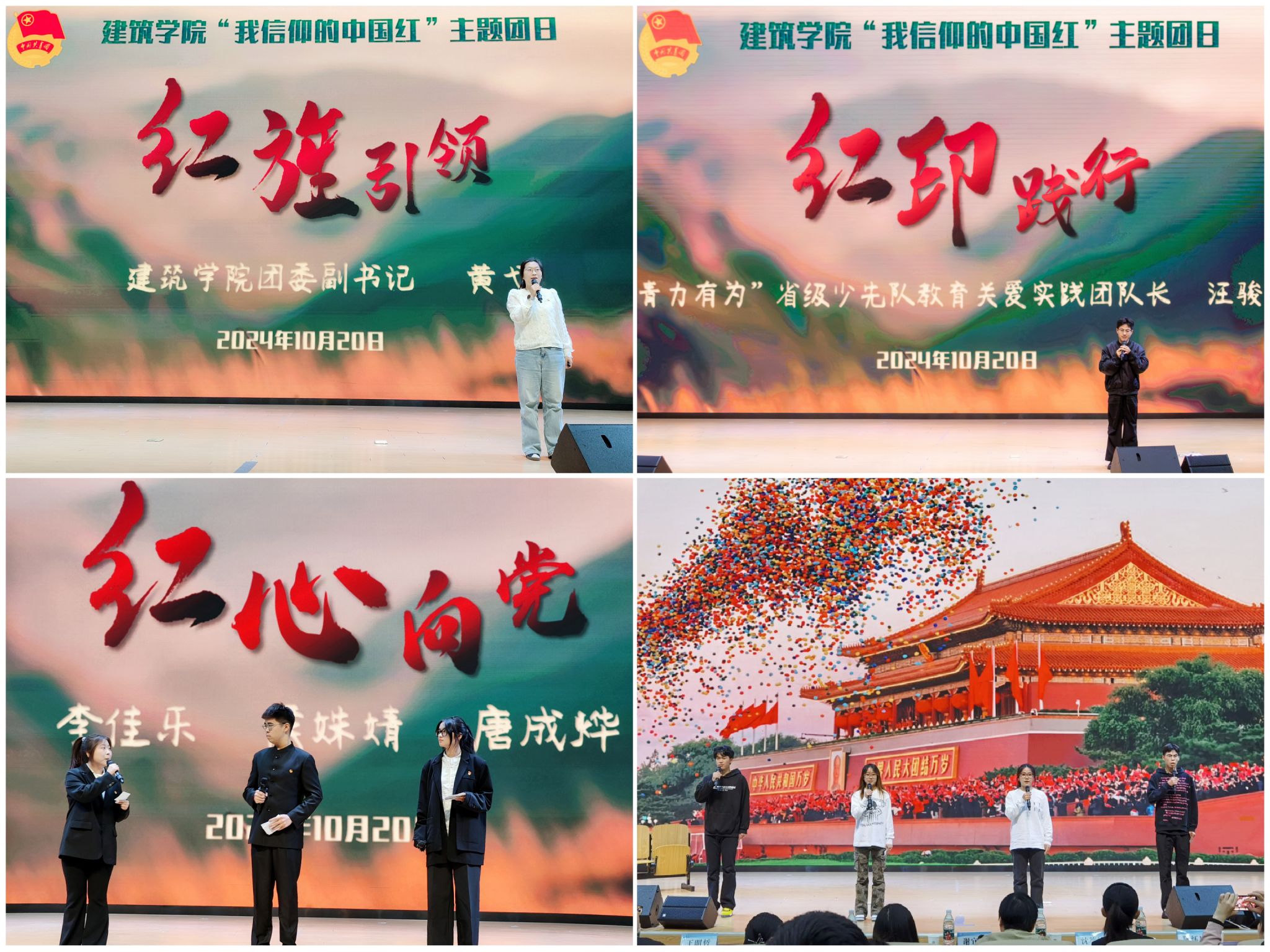 以“中国红”为主旋律的开场视频,记录着建筑学子们坚定信仰、积极向上、勇于担当的精彩瞬间,每一个镜头都饱含着对身边典型优秀品质的赞美与肯定,也传递着对广大青年学子的激励与期许。