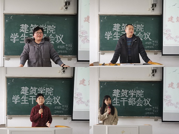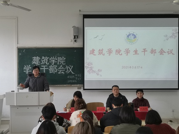 3月17日下午,建筑学院全体学生干部会议在致知楼c108召开。建筑学院党委副书记谢宜勤、建筑学院辅导员沈德艳、李新、阮怀思、建筑学院团学骨干及班团干部参加此次会议,会议由沈德艳主持。