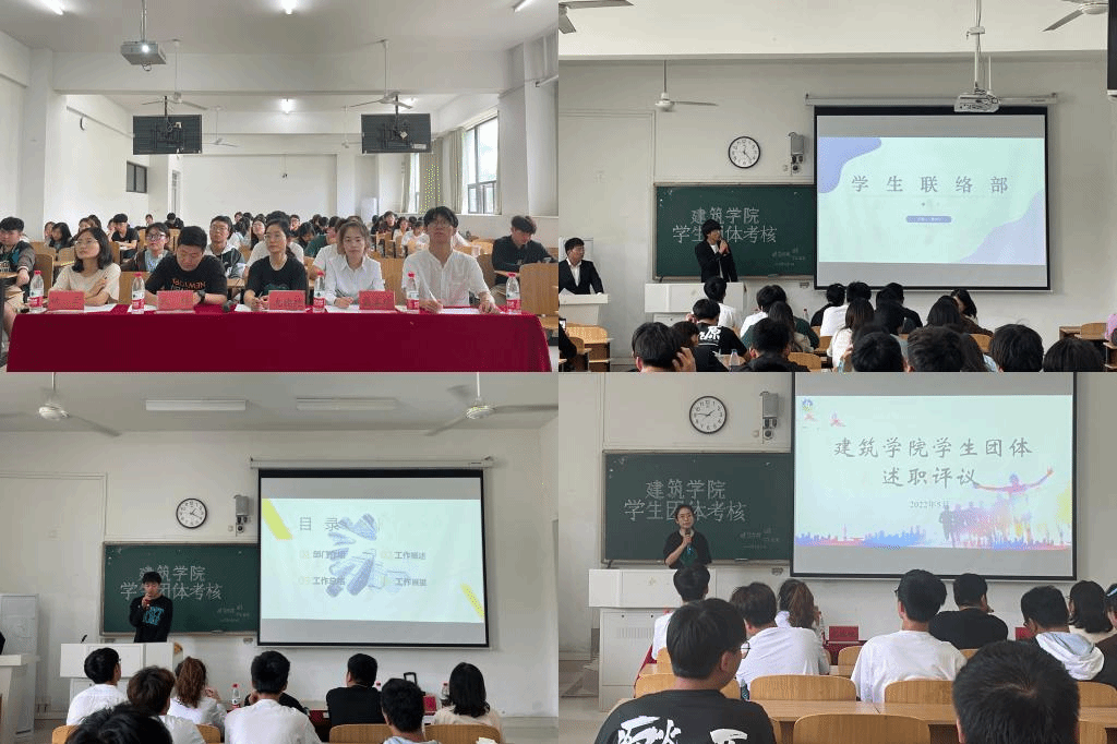 为加强学生组织队伍建设,增强学生团体的工作能力,建筑学院于5月29日下午,在致知楼C108开展2021-2022学年学生团体考核工作。学院团委书记沈德艳,学生会、社团指导老师武辉及各学生团体负责人担任本次考核评委。