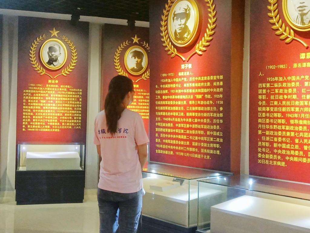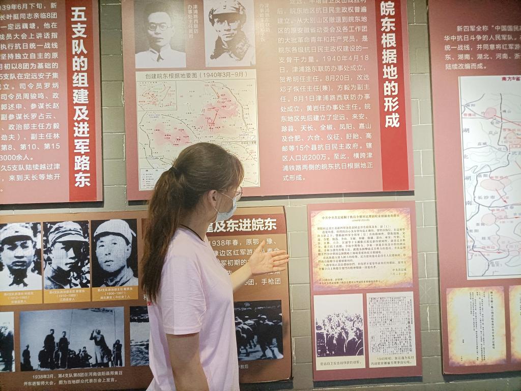在纪念馆内,讲解员向卢艳介绍道:“在中国的革命历程中,藕塘有其重要的一笔。1939年,遵照党中央关于开辟敌后战场的指示,新四军四支队第八团抵达定远藕塘镇,开辟了以藕塘为中心的皖东津浦路西抗日根据地,藕塘一度成为根据地的政治、军事、经济、文化中心。”
