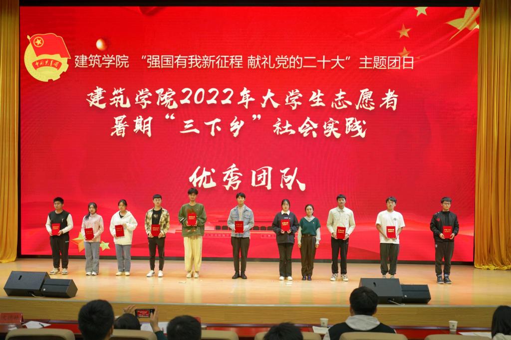 活动现场,参会老师为学院2022年暑期“三下乡”社会实践优秀团队和星火团支部代表颁发了荣誉证书,激励新生班级团支部锐意进取,敢闯敢创,建设一个优秀团支部。