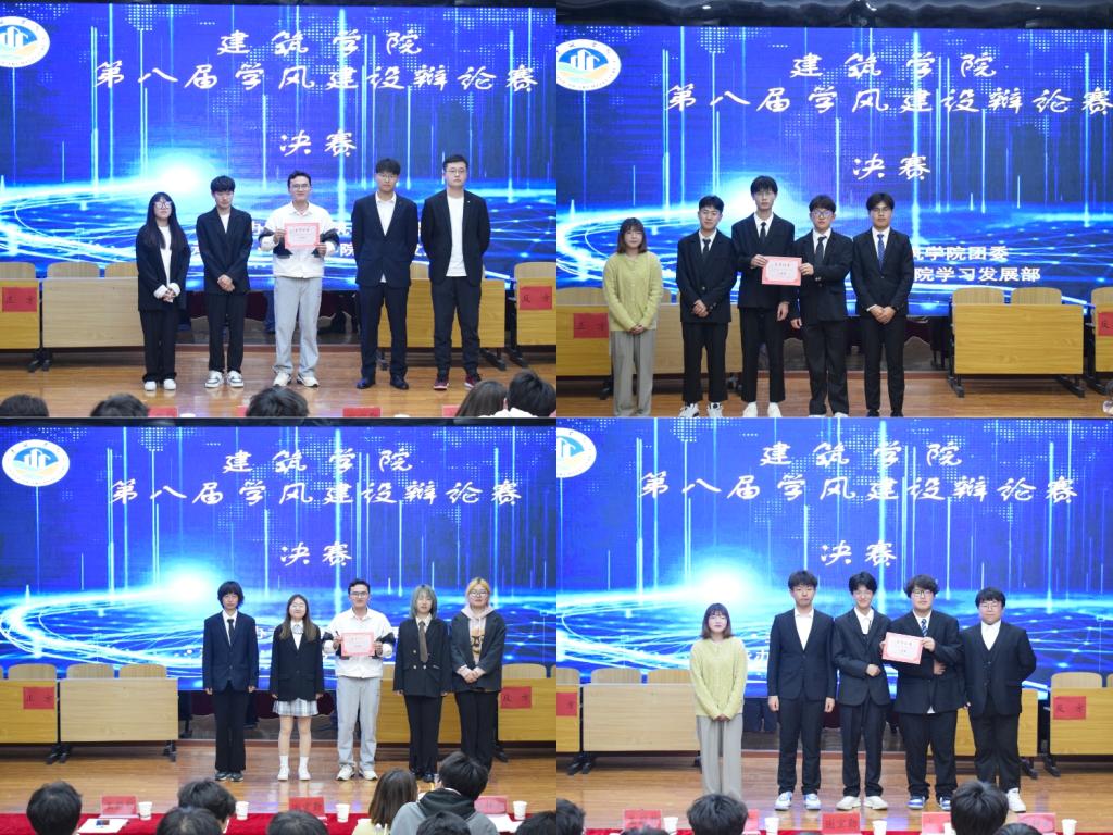 为加强学风建设,提高学生的综合素质,4月23日晚,建筑学院在龙湖校区敏行楼A报告厅举办第八届学风建设辩论赛决赛。建筑学院党委副书记谢宜勤、专职辅导员王明哲,校大学生辩论协会会长方琪,学院学生会执行主席张梓亮、王蔚哲担任本次比评委。